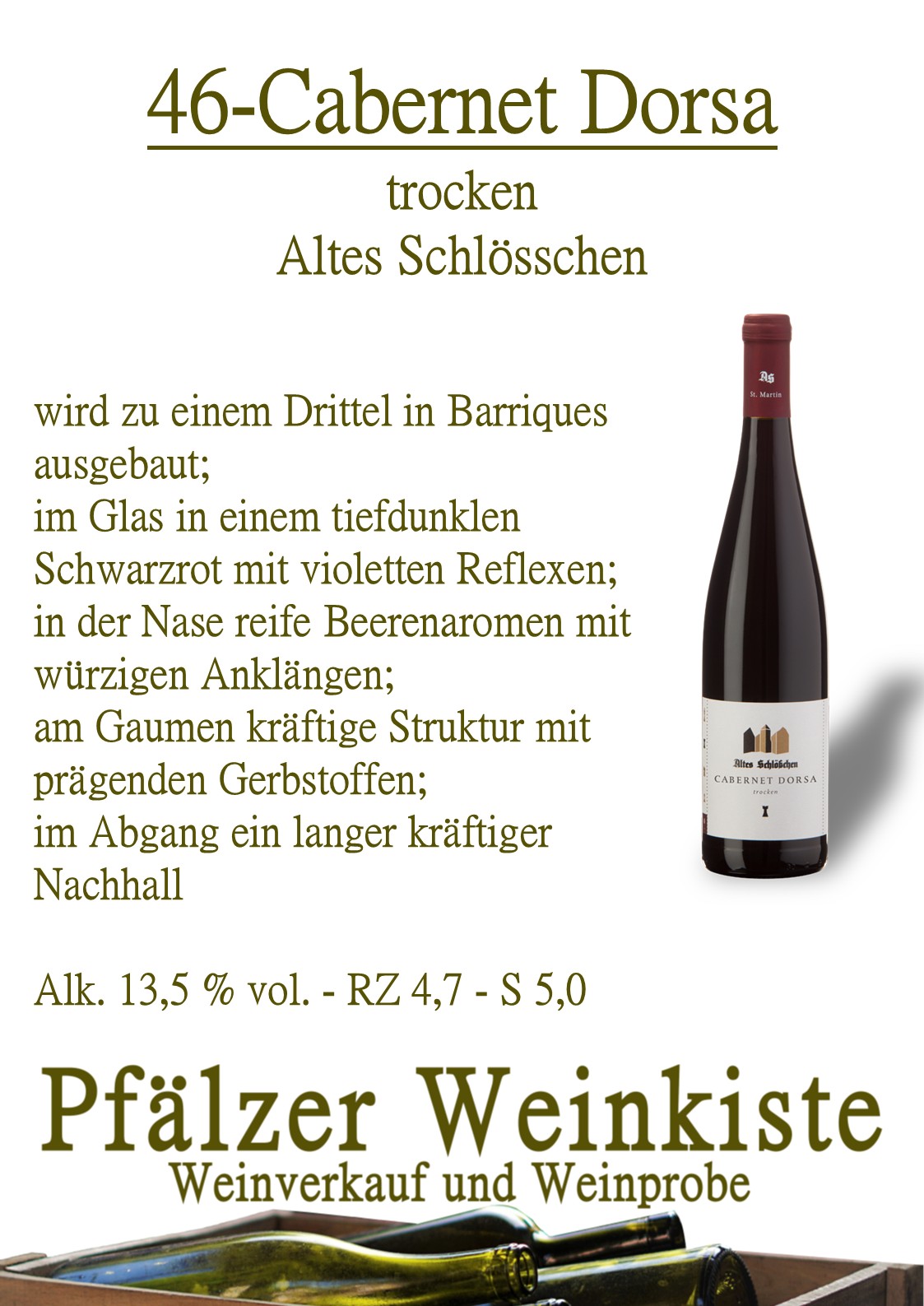 | 46 | Cabernet Dorsa | 2022 | Altes Schlösschen | 9,70 € |